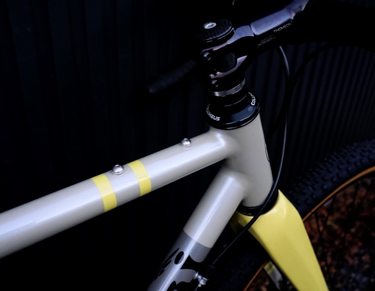 ヘッド44mmHTで、トップチューブ上とダウンチューブ下にダボ穴を装備し、